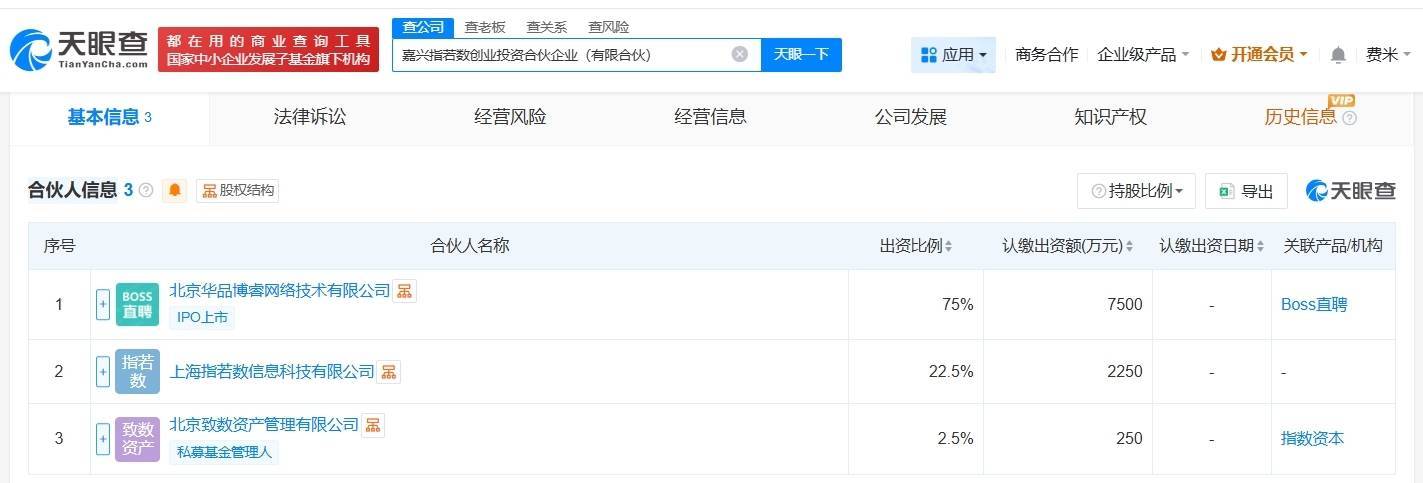 配资之家公司 Boss直聘等在嘉兴成立创业投资合伙企业