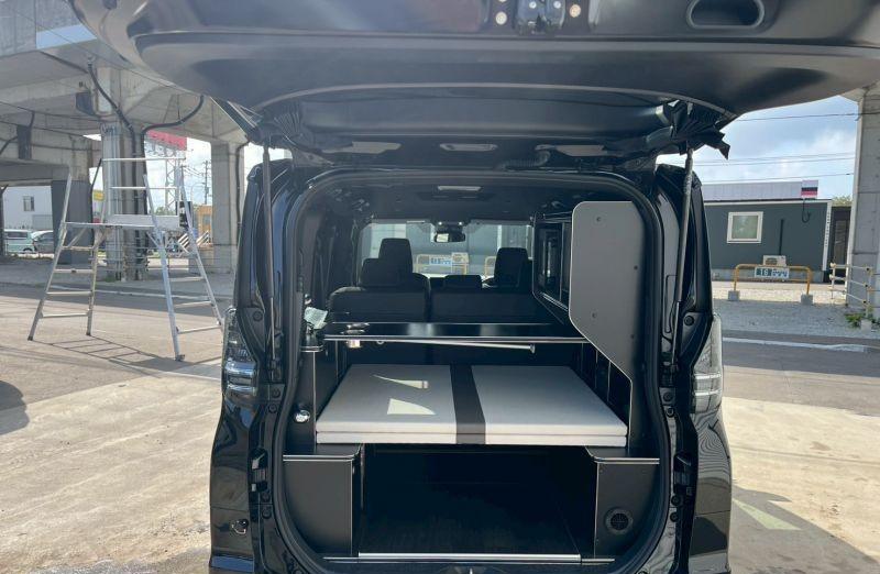 这台丰田VOXY商务车改装成露营车,四轮驱动,内部座椅可以快速拼床,车内配备了基本的生活电器,可以满足1~2人的露营需求。有类似车型的朋友可以做个参考。